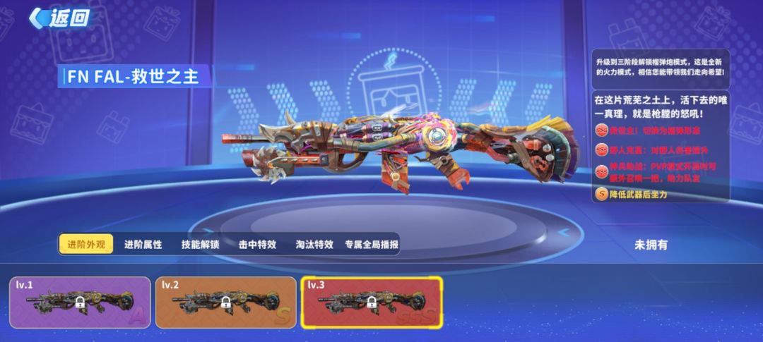 1、「FN FAL-救世之主」第1次打造仅需消耗钻石,后续每次需消耗指定数量钻石和1个金苹果。