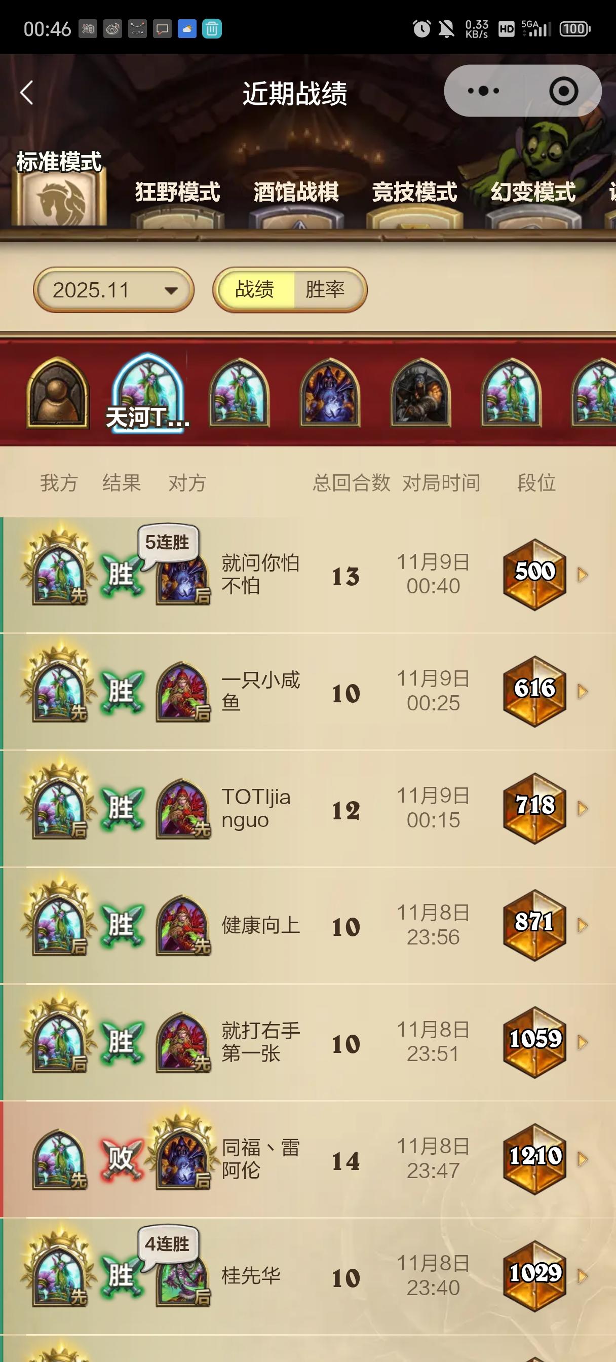 上面连败是早上奇闻冲锋德的14连败,有一套登顶18-2的奇闻冲锋德和我自己喜欢的奇闻可丽德和奇闻渡渡鸟德,可惜我驾驭不了。