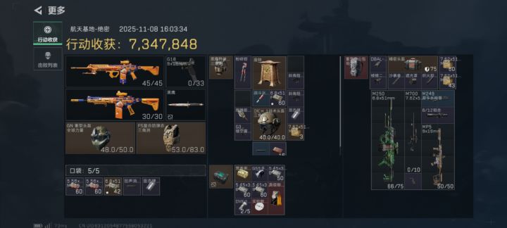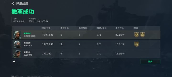一共三张图,第一张我结算截图,第二张全员战绩,第三张物资详情。