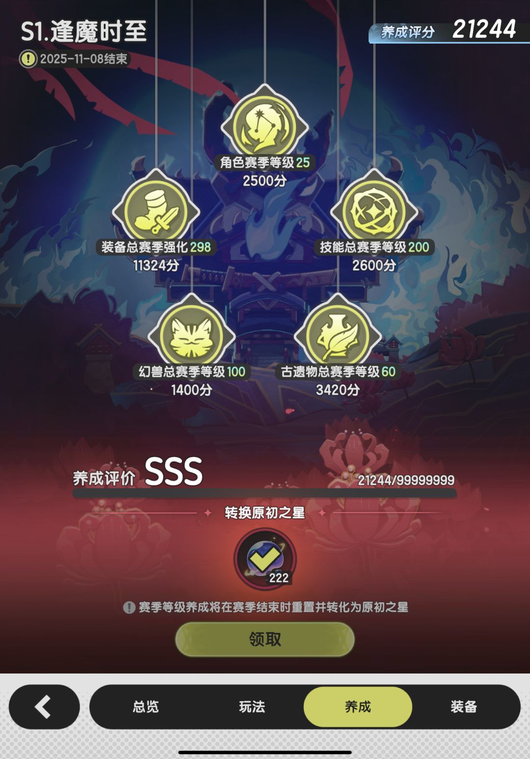 好了就这样吧,嗯~很满足,也觉得玩够了,是时候真正的退游了,所以就把资源全用了,原本达成目标还有应该1k素材的,不过无所谓了