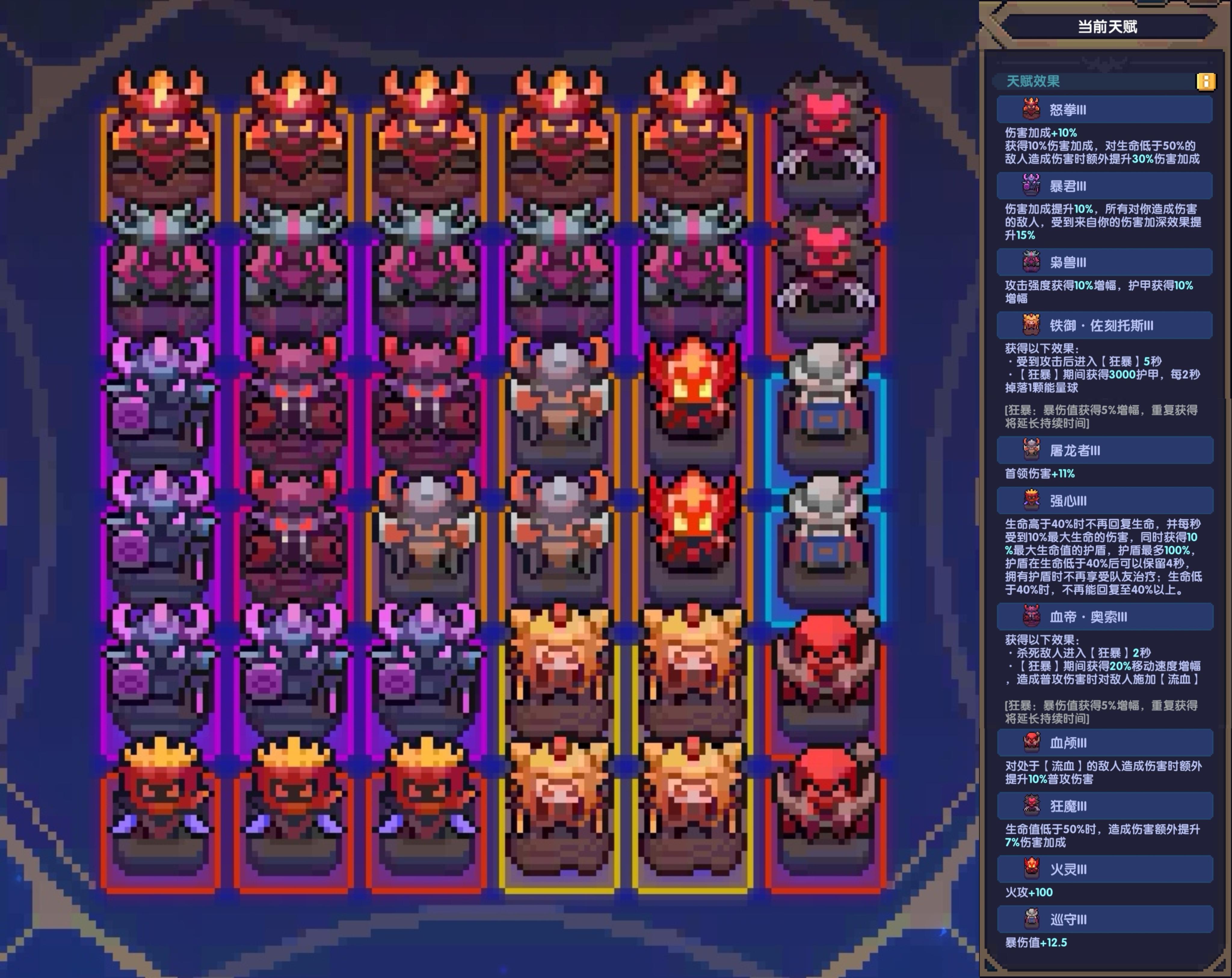 (ps.通关时间长的小天赋换蛮族;攻速不足3.4的铁御换乌萨;主动去吃弹幕触发铁御狂暴效果。)