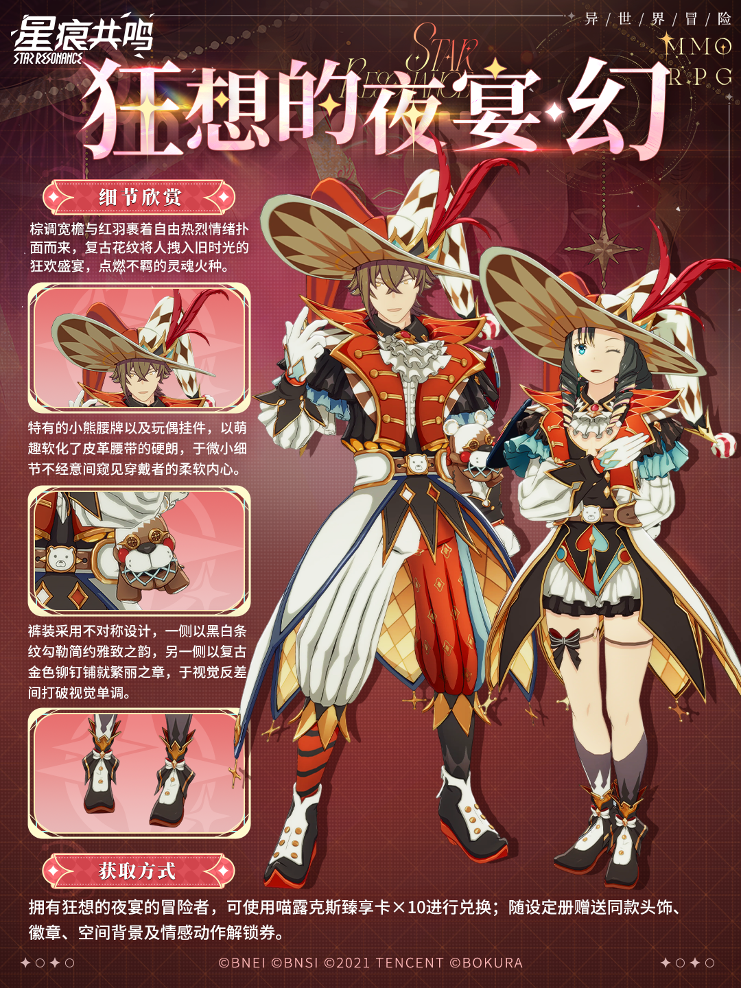 拥有狂想的夜宴的冒险者,可使用喵露克斯臻享卡×10进行兑换。
