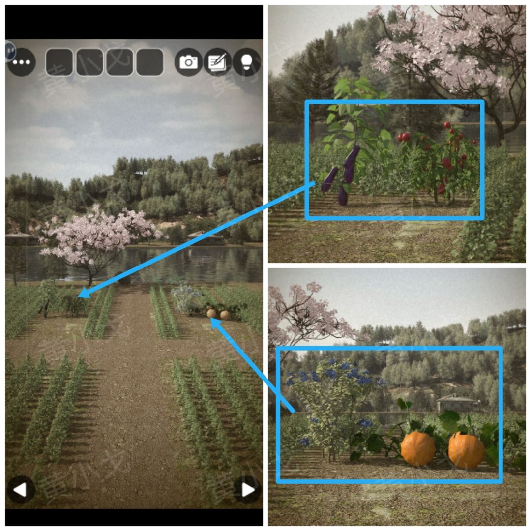 7.点击推车上的小盒子,根据[河边]场景地里的果蔬颜色线索,调整密码锁