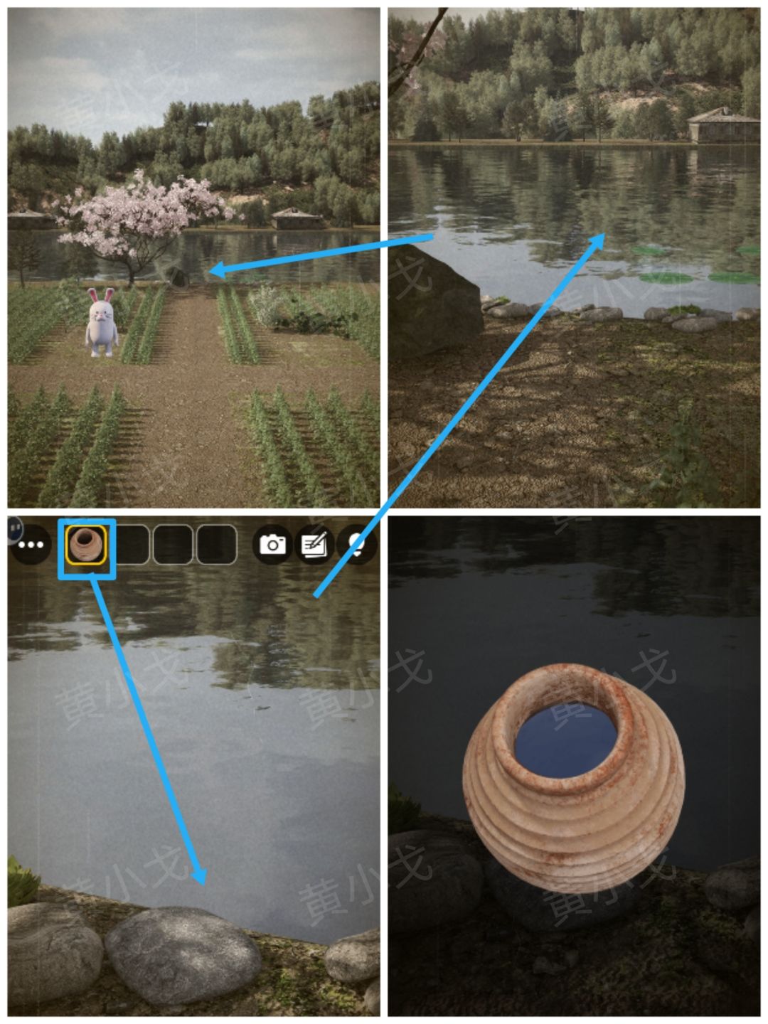 4.点击河边,用【陶罐】装水,获得【装满陶罐的水】