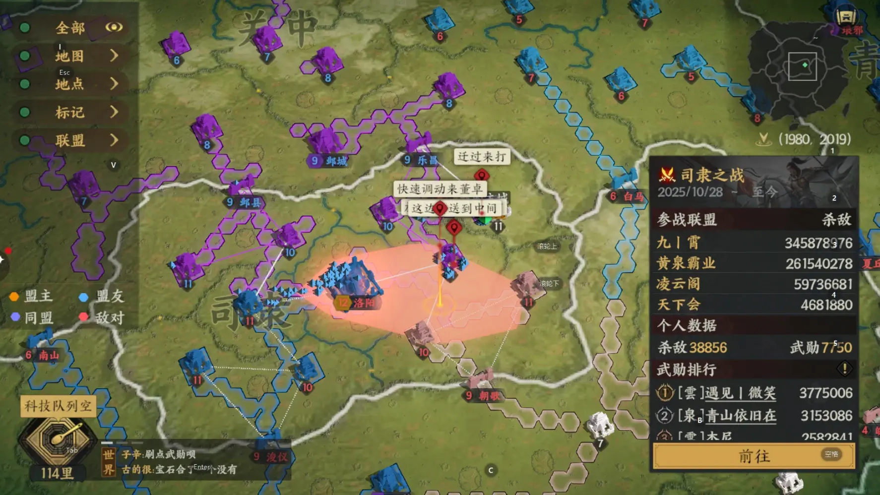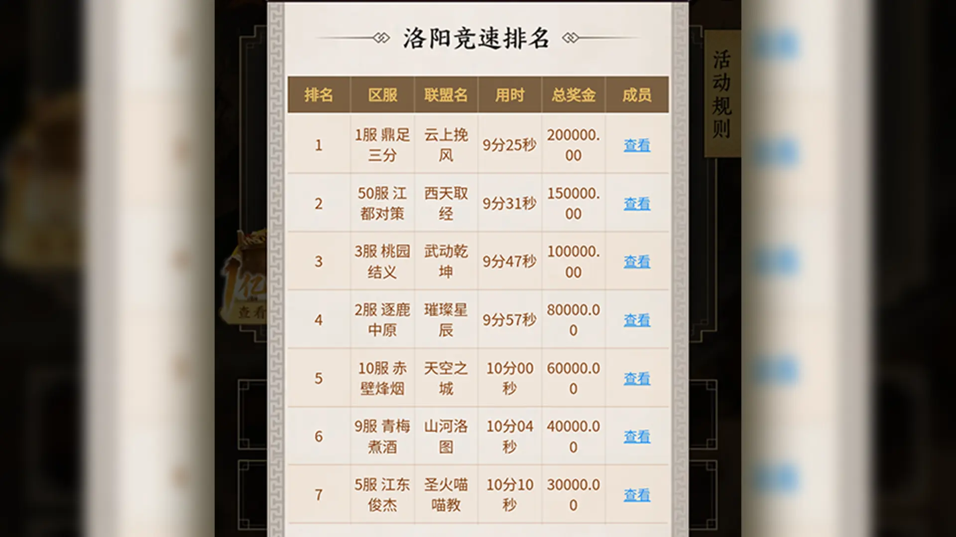 烽火照彻九州,英雄辈出不休。是强盟一路高歌奠定胜局,还是顽强势力的绝地反击?战局瞬息万变,九妹将持续关注!在这里也奉上最新的洛阳竞速排名,快来看看自家联盟是不是要开始努力冲榜啦~