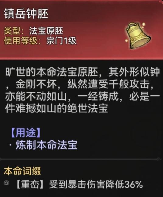 寻找四阶木属性+藤+鳞的遮天盾胚,利用法宝重炼功能达到效果抵抗最大化。