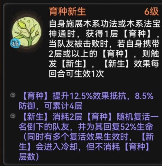 注:由于百花仙册被动需要释放木系功法或法宝神通才能获得育种,因此第二个技能要携带木系功法