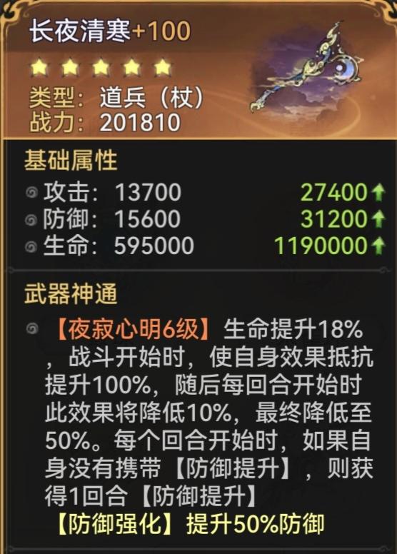 由于元润需要效果抵抗属性,因此道兵的唯一选择便是长夜清寒。