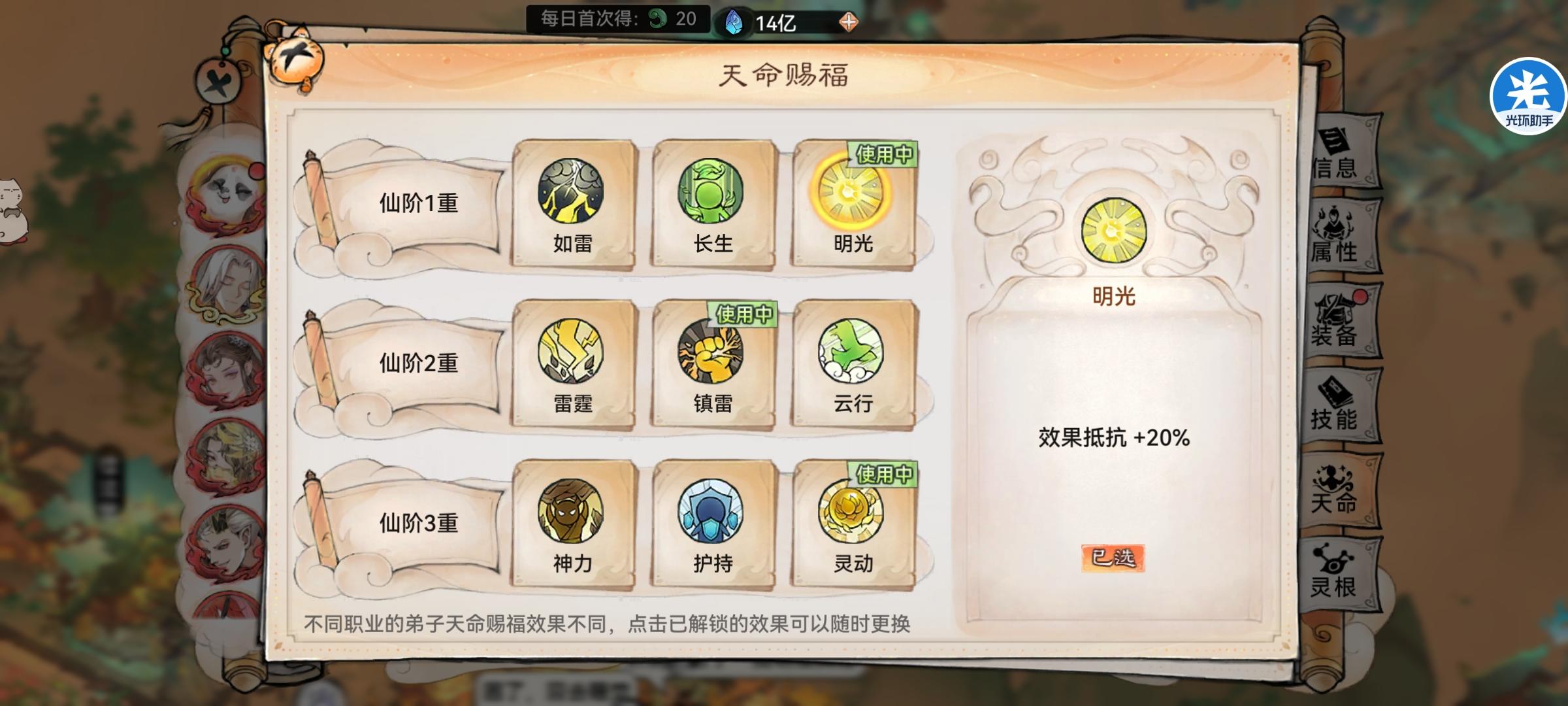 (1)对于有“松风书录”的玩家来说,变异土灵根是最好的选择,土灵根变异能够提供效果抵抗加成,变异技能选择土系威力加成或者土系减免