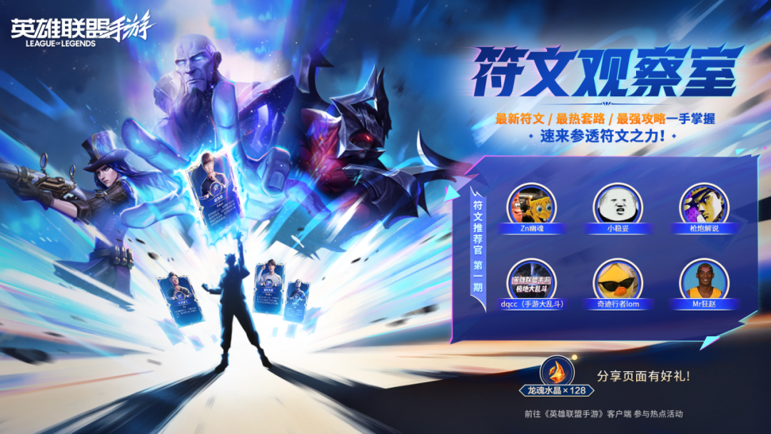 听说...看过这些攻略的都“符”了?最新符文、最热套路、最强攻略一手掌握,【符文观察室】现已上线!快前往《英雄联盟手游》客户端热点活动,和“符文推荐官”一起参透符文之力吧!与此同时,召唤师分享活动页面还可领取龙魂水晶*128奖励~