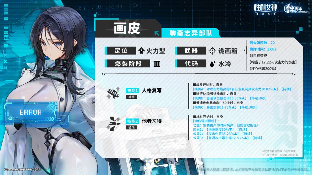 *数值为技能等级10级的数值