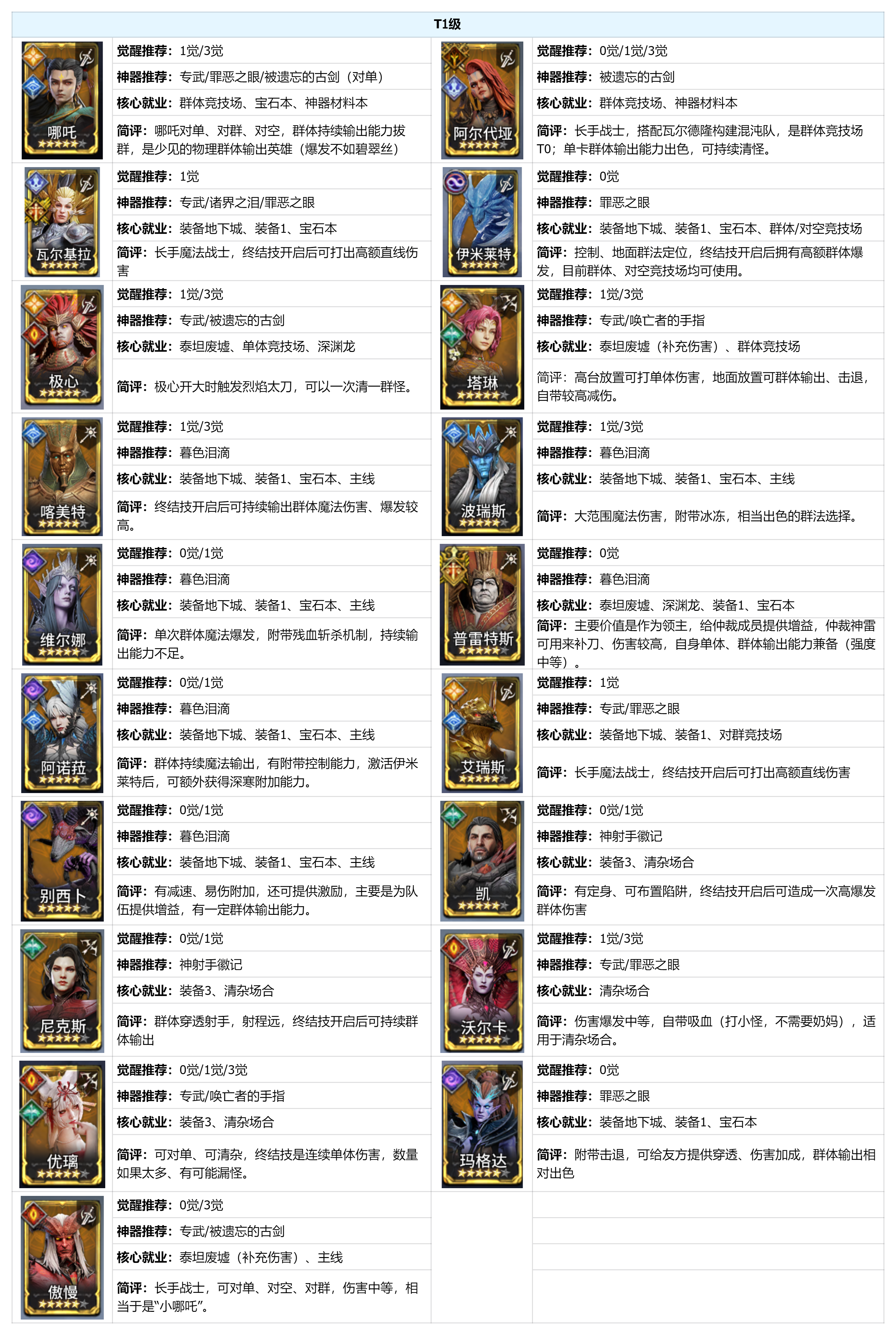 3、T0代表人权,获取后可提升游戏体验;T1代表主力英雄,可优先选择;T2代表可替代英雄,在缺少T1时可选择。