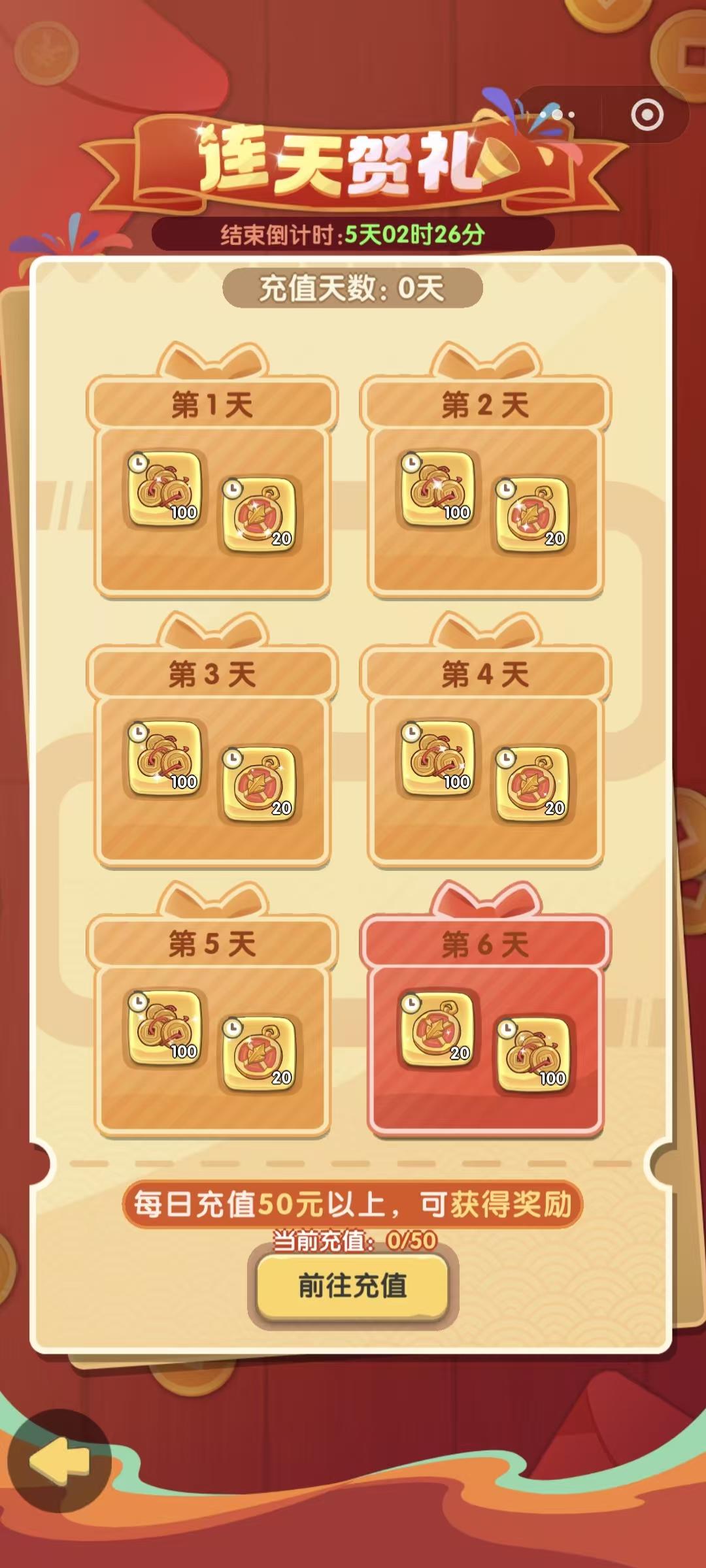 充值惊喜不停,超多福利已备好!活动中每日充值数额达指定标准,限时福利即刻为你装车,千万别错过呀~