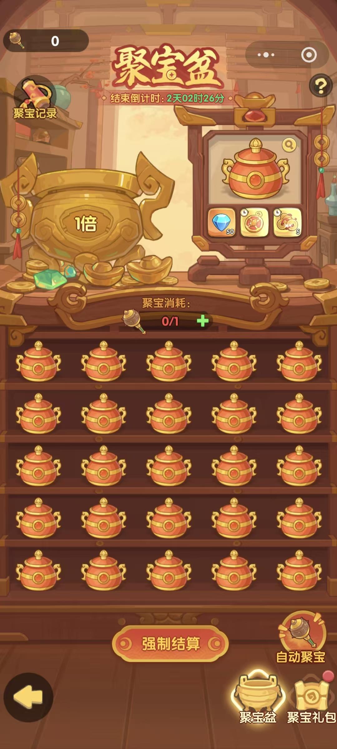 砸罐就有翻倍礼,惊喜好礼等你拿!聚宝盆中究竟都有什么神奇宝物呢?这回【聚宝锤】交到你手中,砸碎罐子就能知道里面藏着什么道具啦~更有几率能获得翻倍道具,来将好运掌握手中,赚得盆满钵满吧!