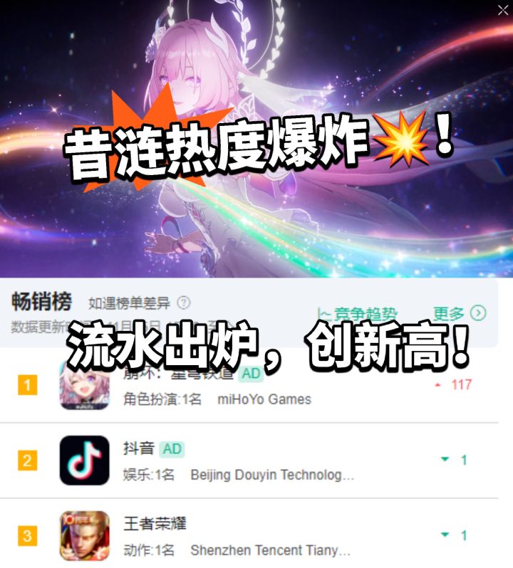 💥昔涟上了不到7小时就冲到了畅销榜第一,总榜排名一下涨了117名,连中日韩服都全登顶了。卡池第二天,全球28个国家和地区排前10!在日服登顶第一,在韩服排第二!