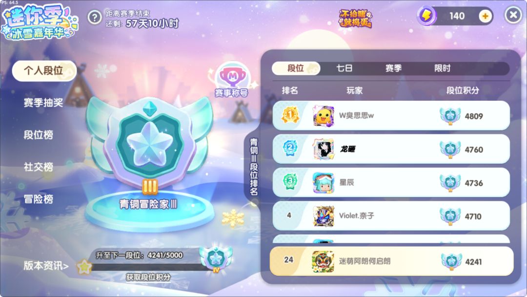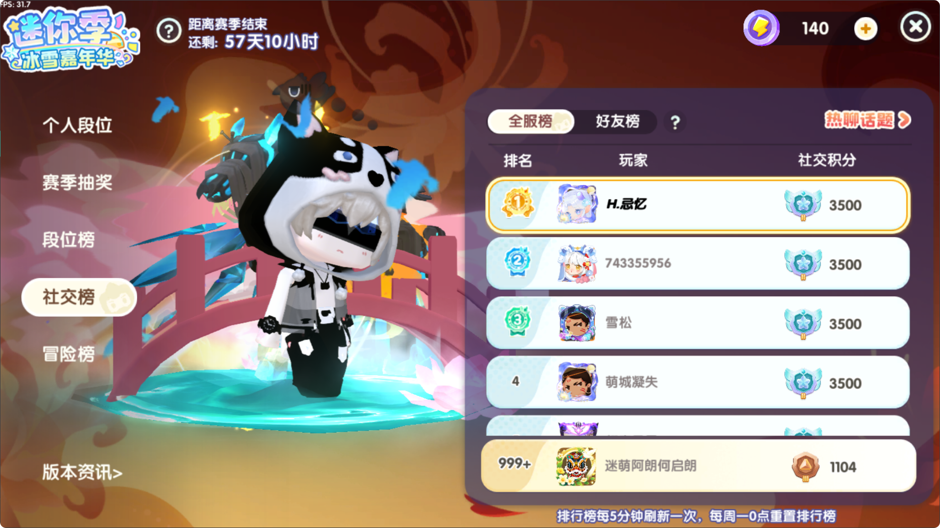 迷你季S5赛季-冰雪嘉年华上线好几天啦!本期迷你季各类榜单,很多冒险家表示有点蒙圈,不知道到底每个榜单应该怎么冲榜,什么才是关键考核数据,兔美美今天带领大家一起学习下这几个榜单吧!