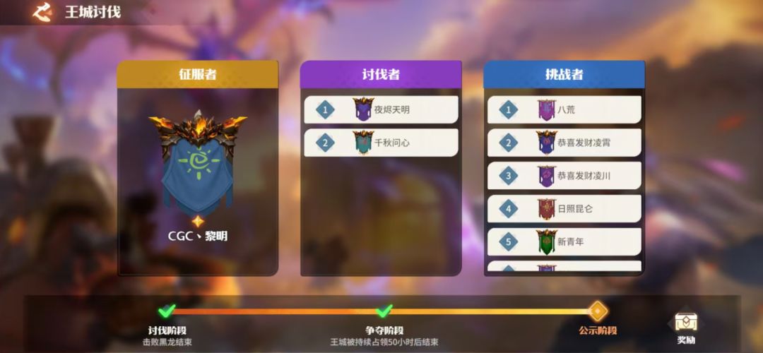 S-0043服赛季终局,王城争夺战尘埃落定。【夜烬系】联盟【CGC丶黎明】成功问鼎,荣登王城宝座。