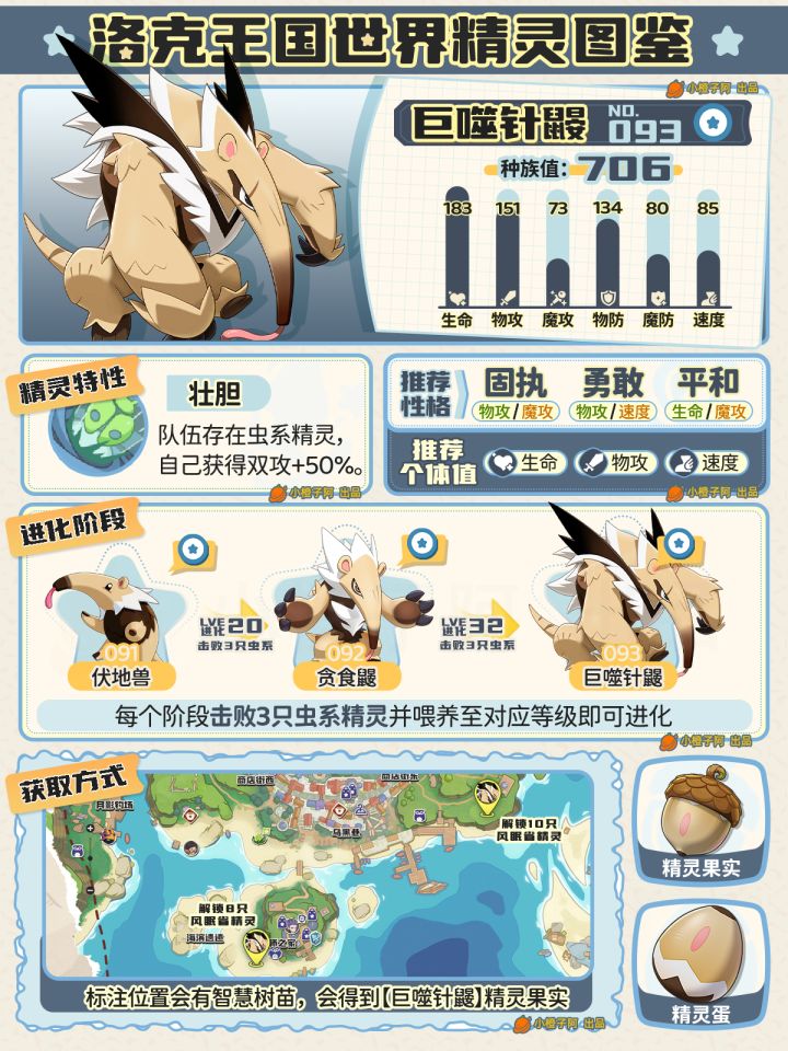 这是橙子第一篇《洛克王国:世界》三测精灵图鉴攻略,这次是093巨噬针鼹到130怖哭菇的精灵图鉴。