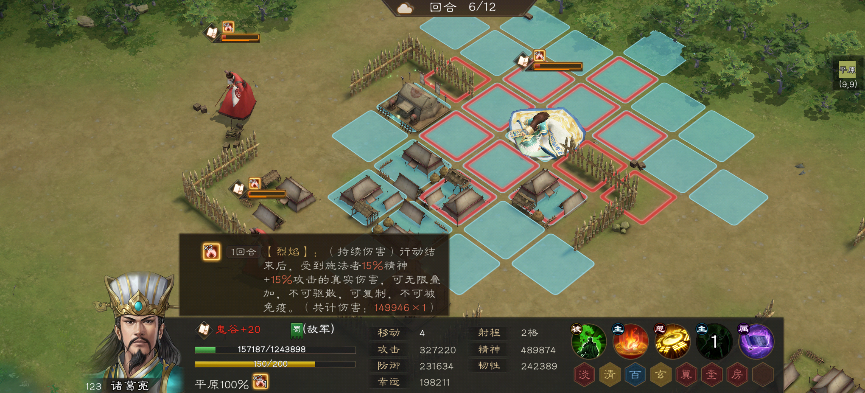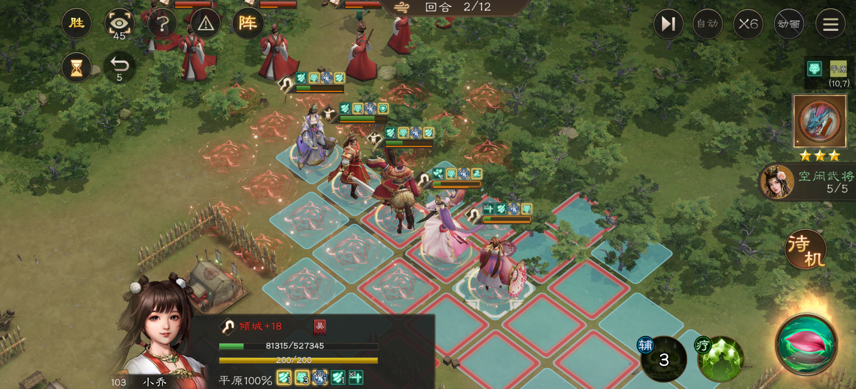 必要条件是装配九头龙增加一回合持续伤害,然后第二回合周瑜火烧后排小兵,貂蝉再动往后拉待命,其余除了小乔的所有人往前顶兵,第三回合周瑜大招必须打中所有人,小乔继续后撤,剩下的交给时间!(这种打法需要一点点运气,比如甄姬多闪避一次,孙权尽可能多抗一下。另外周瑜必须第二回合火烧后排,这样诸葛亮才能被地火烧两回合)