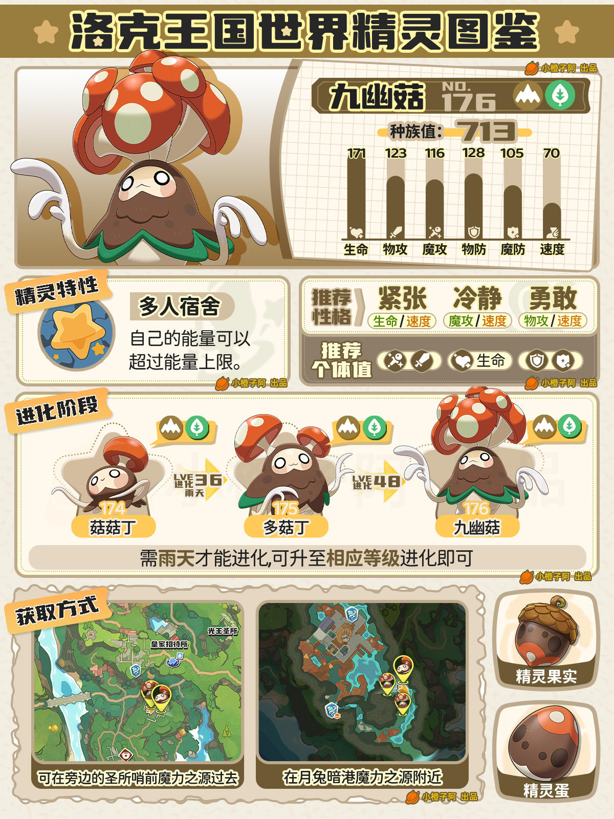 ②图鉴性格、个体值并不是唯一,由于精灵配队多种多样,推荐的性格与个体值会出现差别,有可能橙子图鉴中并没有出现,小伙伴同样可在评论区提出来,橙子会根据现实情况进行修正。