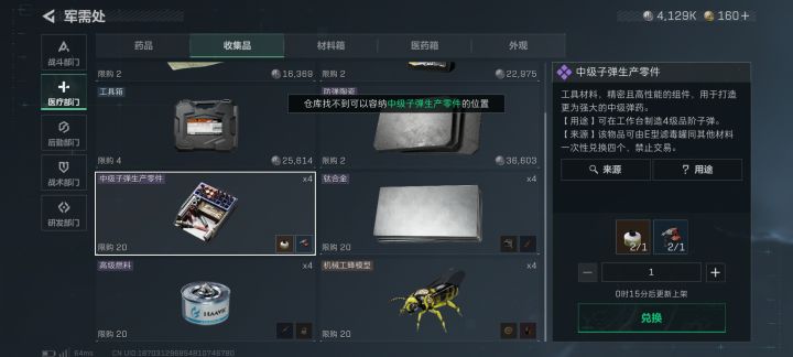 中级子弹零件仓库找不到可容纳的位置