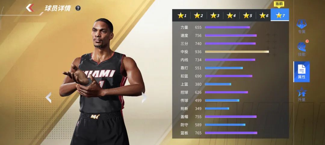 龙王不屈,咆哮响彻天际!热火时代的波什能内能外,当年助攻雷阿伦的那个篮板便是波什所抢!936的中投属性,突出一个中近程稳健得分!765篮板和755的盖帽,奠定了波什扎实的篮下基本功,740的三分和734的内线再配上756的速度!再现昔日热火最佳空间型大前锋的进攻造诣!