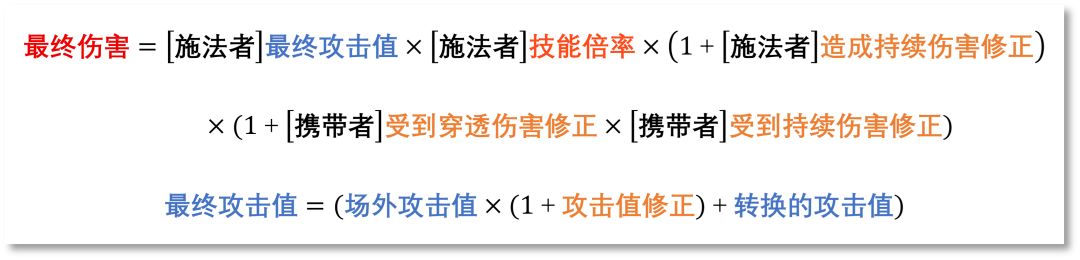 想来想去,“授人以鱼不如授人以渔”。既然没法为每个角色都做一套现成的配装答案,那我索性就把最底层的伤害、治疗和护盾计算公式整理出来,分享给大家。希望能帮助各位真正理解游戏机制,从而自己推算出任何搭配下的预期效果。