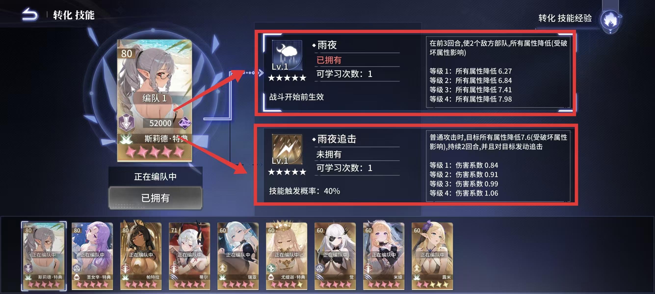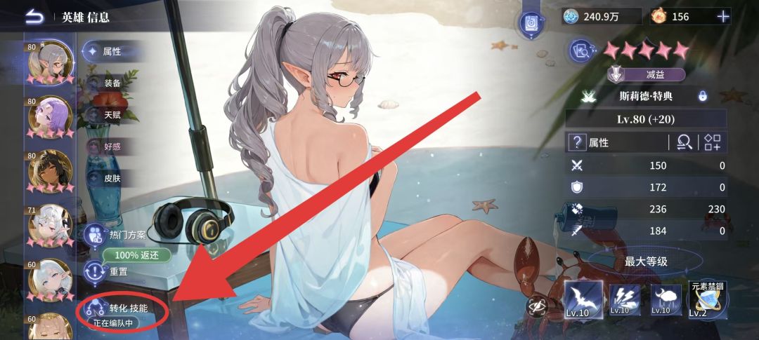 在角色界面,点击【转化技能】就可以进入转化界面,注意,转化技能会消耗角色卡。
