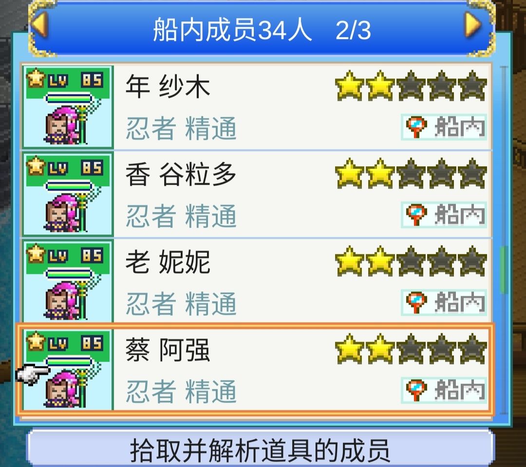 2个航海士(特技:航海所需体力-1秒(最多-2秒);职业转到开店)