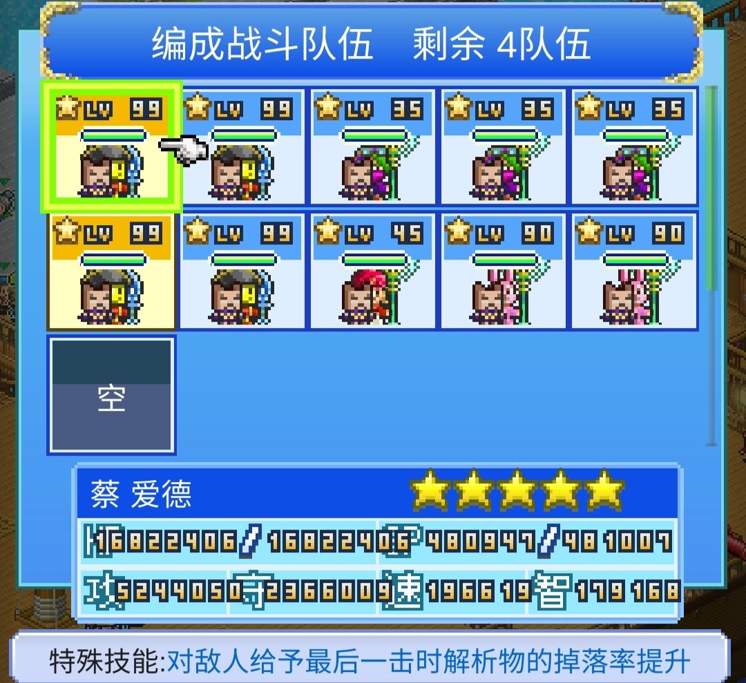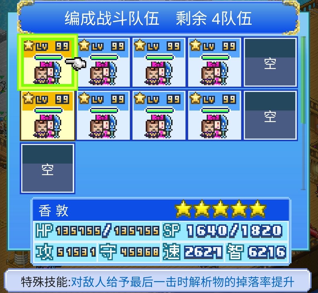 渔师队(特技:对敌人给予最后一击时解析物的掉率提升;职业转到机器人)