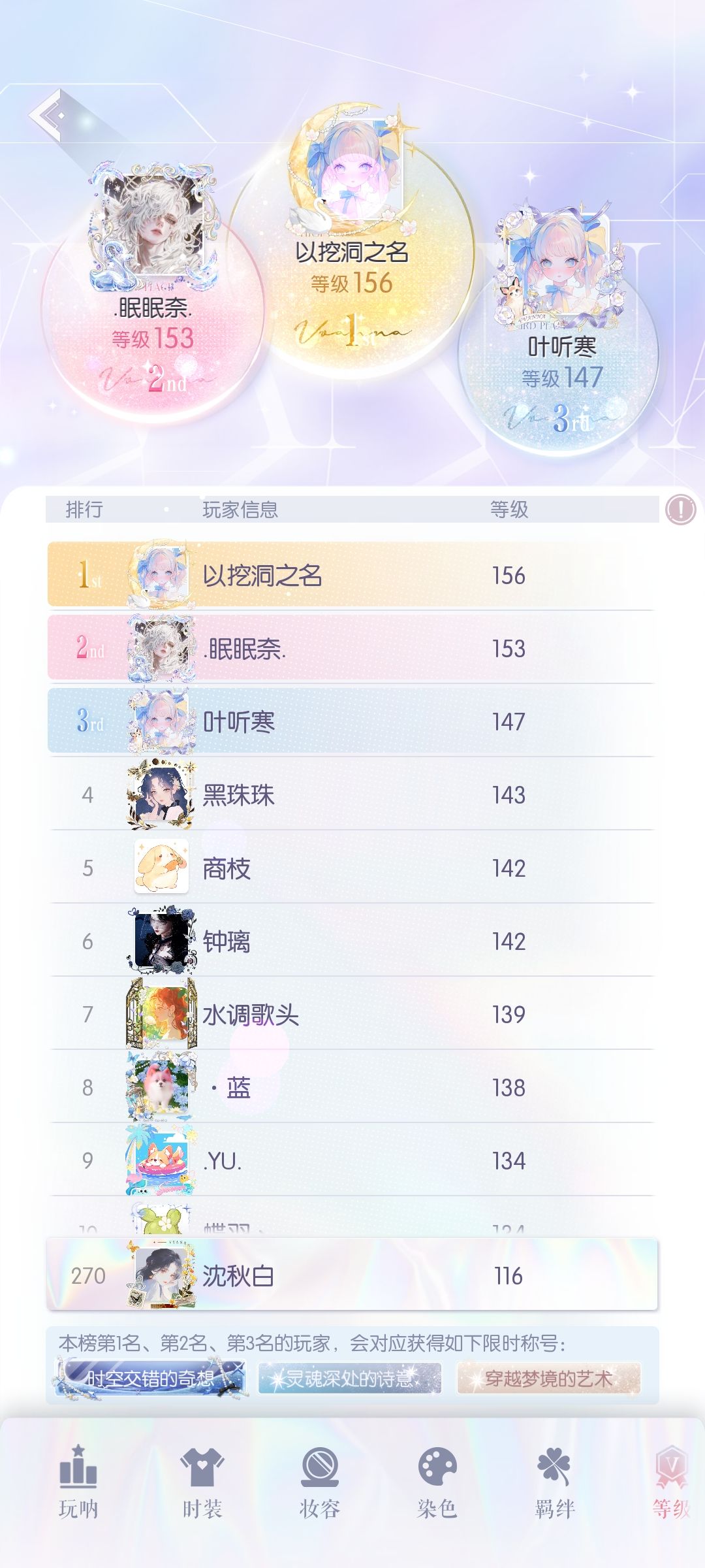 开服玩家在烁夜迷离,记得最高的时候等级榜排到一百四十多,差不多两年多的时间体力没满过,最近没用心玩掉到两百七。