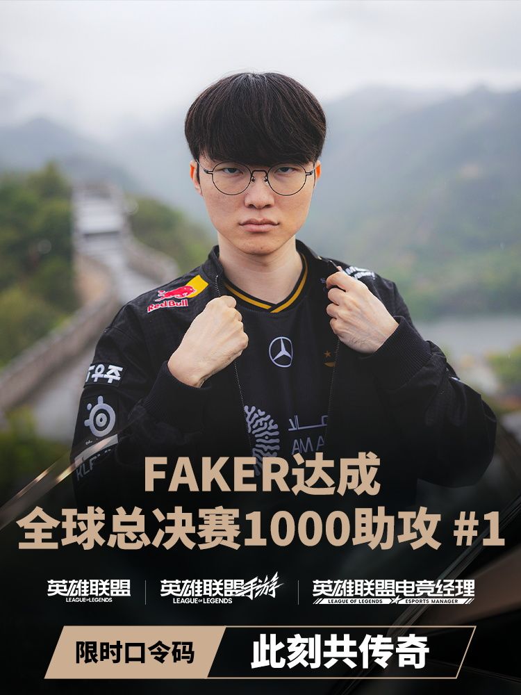恭喜Faker达成全球总决赛1000助攻成就!召唤师前往游戏内“主界面右上角消息盒子-社区-福利”,输入限时口令码【此刻共传奇】,即可领取游戏好礼~