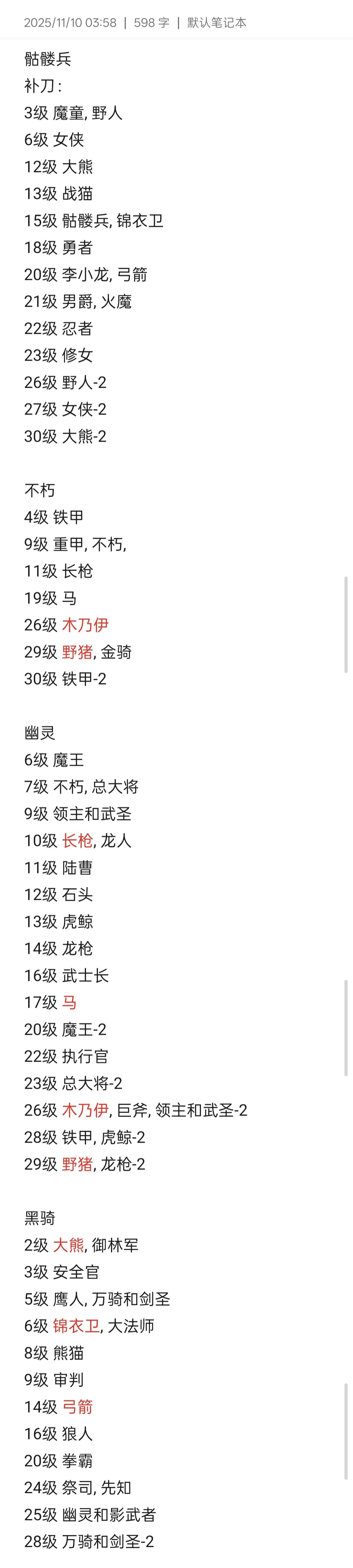 当剑兵达到以下等级时,砍这些兵种省一刀: