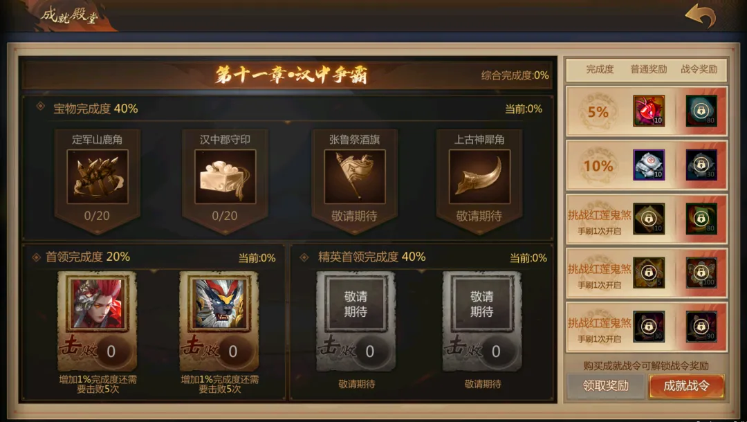 第十一章 「汉中争霸」关卡成就、奖励一览