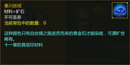 新道具【秦川丝绒】是十一章防具官印的合成材料。