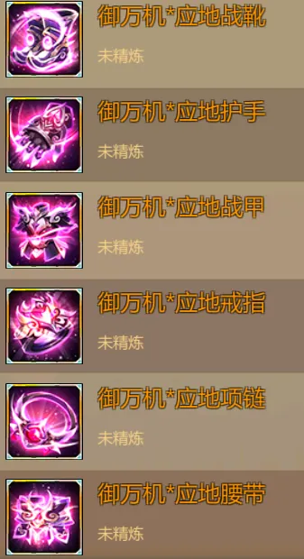 防具合成材料为:对应的十章装备+十一章装备精元+神之防具打造书页+秦川丝绒