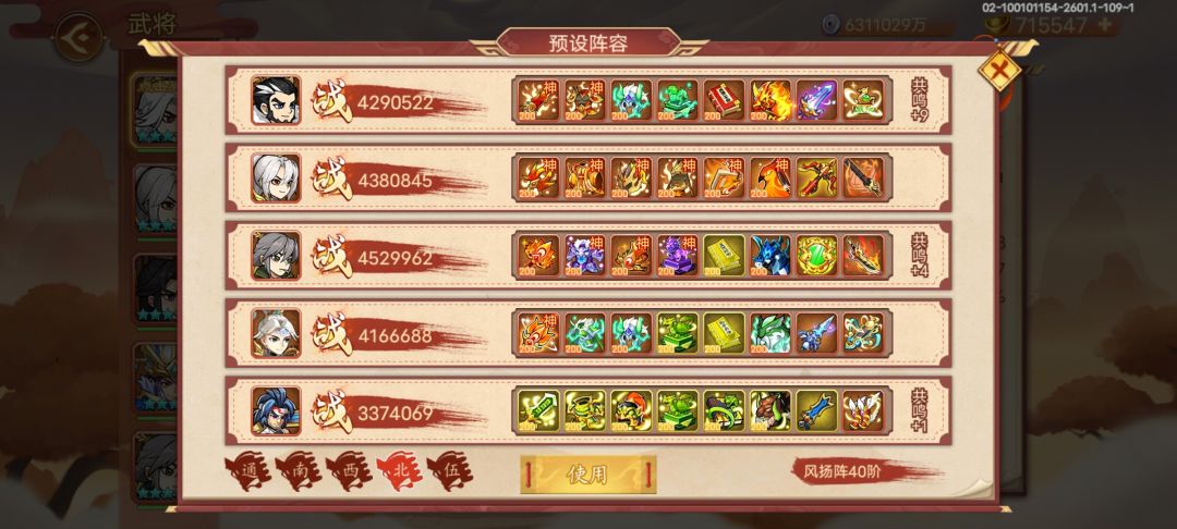 装备阵容如图