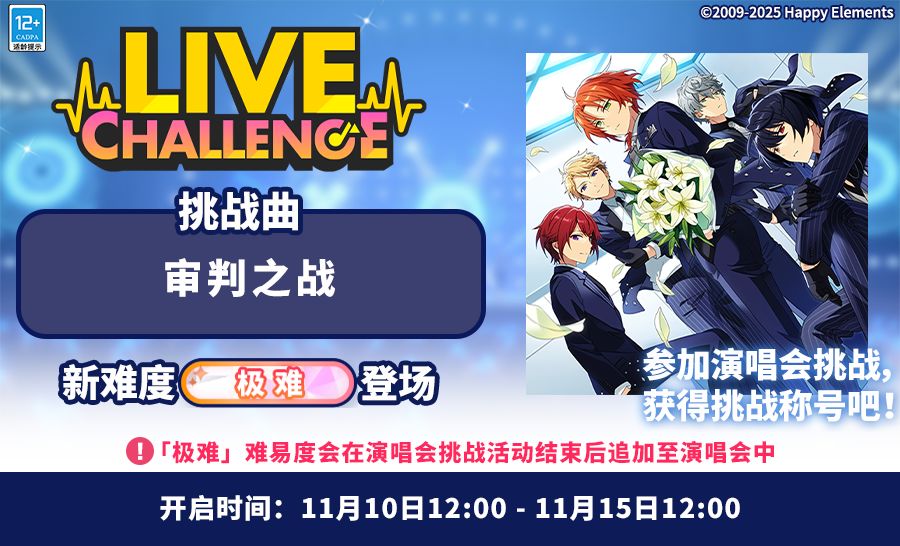 「极难」难易度会在演唱会挑战结束后追加至演唱会中。