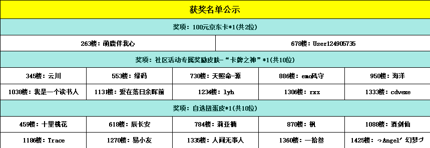 -------------------------------------------------------------(中奖名单)--------------------------------------------------------
