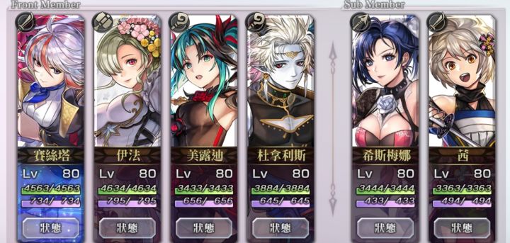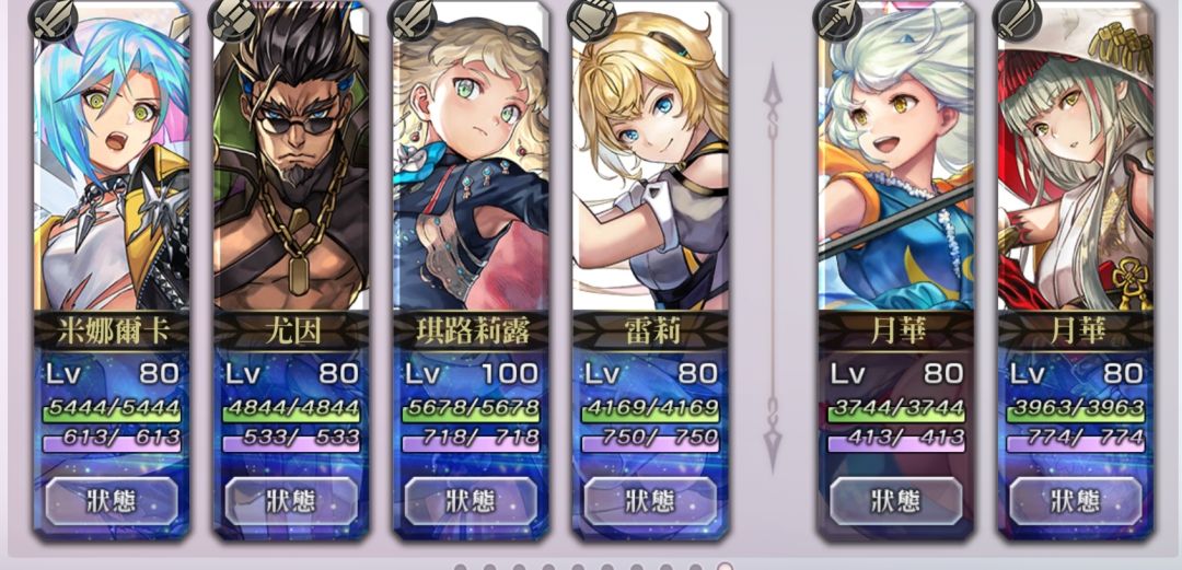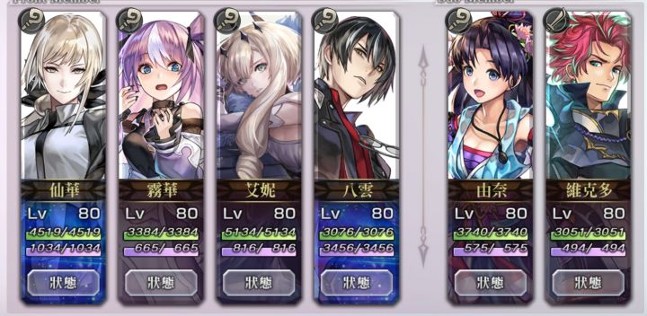 其他都还没觉醒,毕竟玩了三四年,也课过金,刷过经验书,这段时间因为财力和石头不够错过了薇列特,所以雷队已经落后了,但这些队伍已经够我玩很久了。这些都是我辛苦肝的成果,其中有一些觉醒的还没完全点满,缺少天冥,我把碧莲和狼姐分开独立组成一个风队,目前剧情全通,现在集中肝外传,因为谢奈有风属性技能我把她放进了碧莲那组。记录贴。