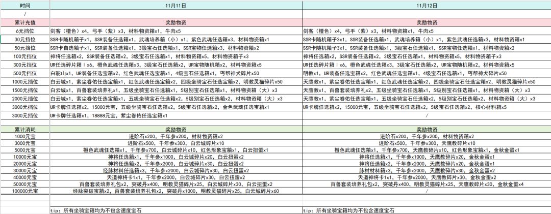 5.11月14日中,累计充值的1000档位,武道UR自选*2,现已完成修改;
