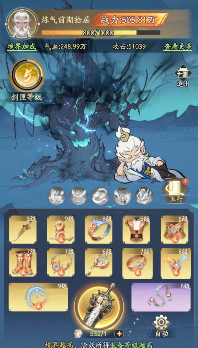 玩法简介:消耗真炁,帮助剑仙诛除树妖,淬炼剑匣,提升属性!