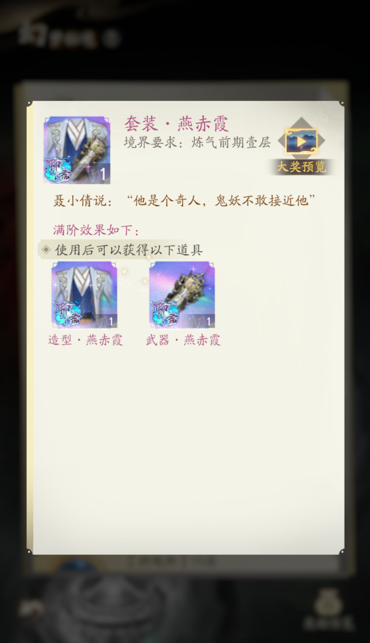 小银月:想必细心的道友已经发现了本次的首个联动角色“燕赤霞”了吧!道友们可以通过挑战幻梦秘境关卡,获取本次的全新造型“套装·燕赤霞”,而争得榜首的道友还能获得【古·剑匣】等丰厚奖励!