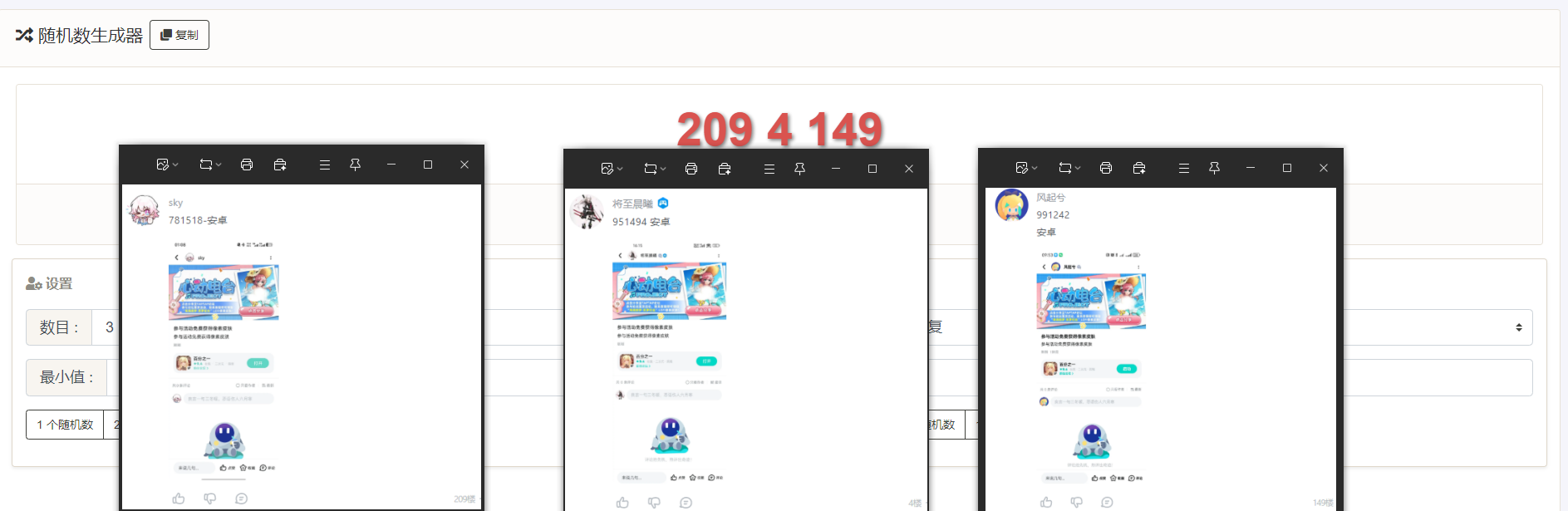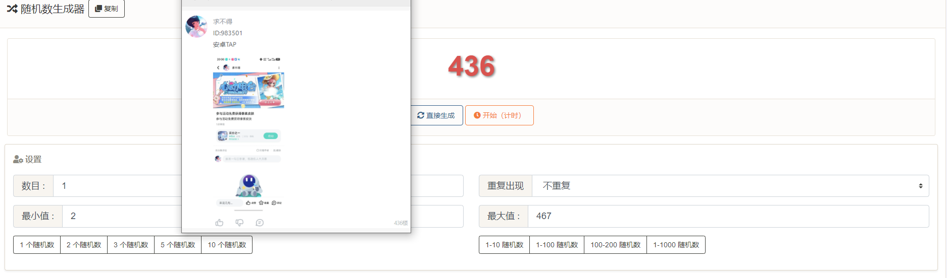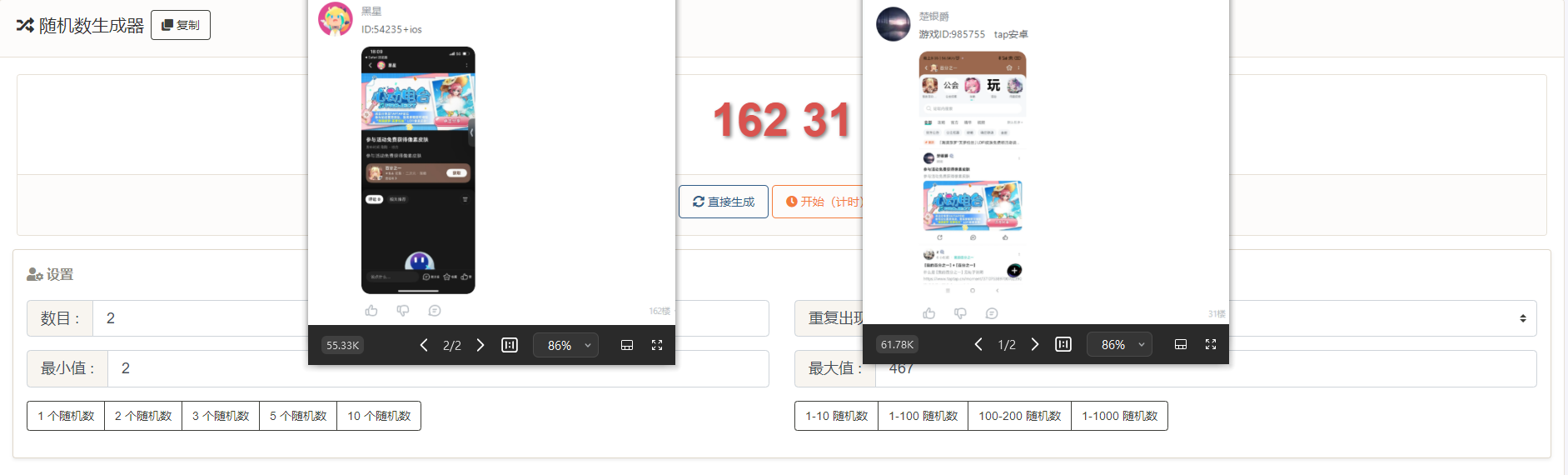 2:奖励以结束时间总楼层数为基准,由在线随机数生成器随机选出;