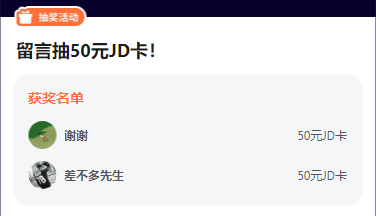 恭喜以下2位镇长大人获得本次活动的奖励,50元京东卡*1~