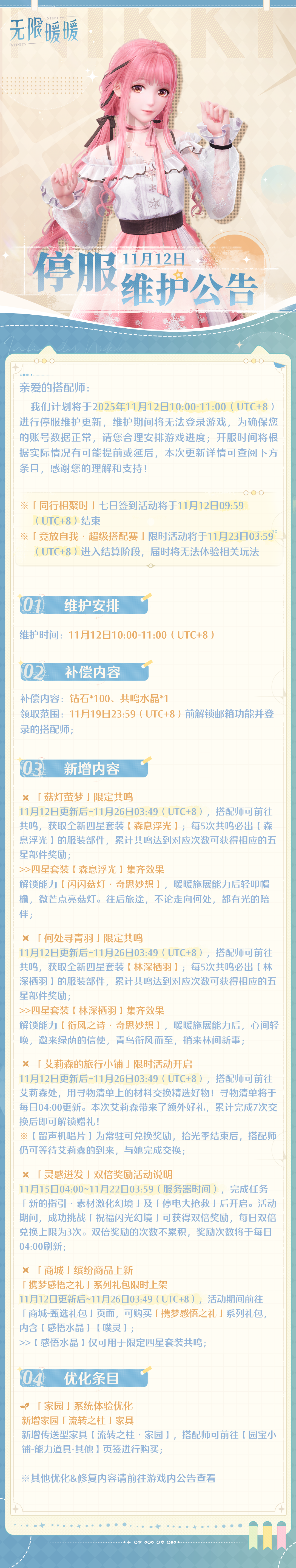 ➤《无限暖暖》1.11版本「拾光季」现已全球同步开启!