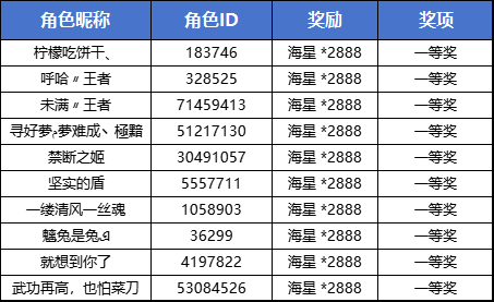 - 💎 一等奖(幸运儿*10)|海星 *2888