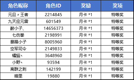 本期活动已结束,感谢冒险者们的参与,以下是获奖名单: