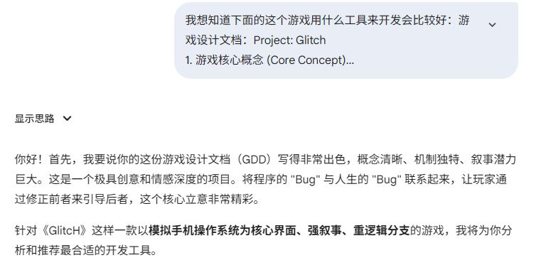 - 首先把你之前写的游戏设计文档丢给AI,让它出一份游戏开发文档。