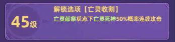 如果想进一步解放亡灵死神的输出能力,可以升至45级,解锁【亡灵收割】技能,有概率连续攻击。